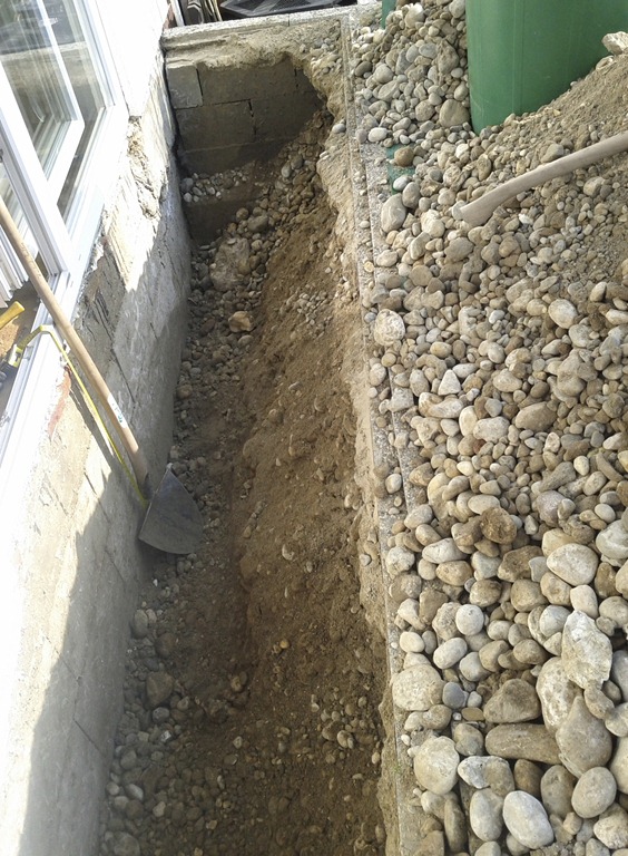 Also um 3.00 Uhr soweit wach und nachdem ich Mittagessen gekocht hatte , Kinder für die Schule fertig gemacht und vorher etwas aufgeräumt hatte – genau in der Reihenfolge- fing ich um ca 6.45 Uhr mit dem Ausgraben der Terrasse an. Jetzt nicht die Ganze kalr aber knapp 5 Meter Länge und gut einen Meter tief. Schotter und immer größere Steine stellten sich mit in den Weg und rutschten auch eifrig von der Seite her nach so das zum Schluß etwas mehr als ein Meter auch zur Seite freigegraben war. Genopptes Plastik rein ( Noppenfolie) und vorsichtig wieder zugegraben. Ob das so viel Sinn machen wird glaube ich jetzt nicht mehr wirklich: Selbst in einem Meter Tiefe wo nur noch die großen Steine lagen hatte die Wand eine “ Baufeuchte” von etwa 23%. Und das obwohl wir seit November keinen nennenswerten Regen hatten und der Schnee im Winter sofort Abgeschaufelt wurde. Der Geruch war entsprechend “Modrig” und in etwa 80 cm Tiefe habe ich versehentlich eine kleine Schlange in zwei Hälften zerteilt. Wie die da auch immer rein gekommen war. Die Waschbetonplatte sehen jetzt aus als ob sie Kindergartenkinder auf der Terrasse verlegt hätten. Ich war vorhin so Müde und Kaputt das ich mehrmals die selbe Platte “ Nachbesserte” und sie schlimmer wackelte und schräger war als je zuvor. Drei Reihen sehen so aus und eine Platte sieht, weil ich sie leicht abschlagen wollte, wie ein großes Puzzel aus. Ich muss da in ein paar “Tagen” nochmals rann sobald mein Muskelkater mich mich wieder bewegen lässt.