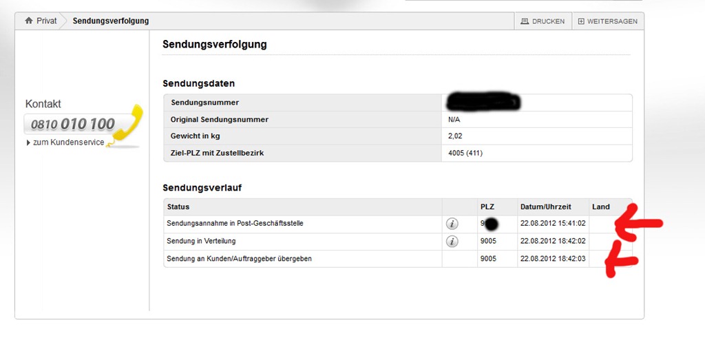 Das Paket wurde also angenommen, sofort ist da Jemand ins Auto und hat das Paket in ziemlich genau 3 Stunden nach Linz – also fast quer durch Österreich- gefahren und zugestellt. Wobei zwischen Verteilung im Paketzentrum und Zustellung nur eine einzige Sekunde gebraucht wurde! Bravo Post das nenne ich mal super schnellen Service! Nur warum brauchen Pakete in anderer Richtung mindestens 3 gerne auch mal 4-5 Werktage?