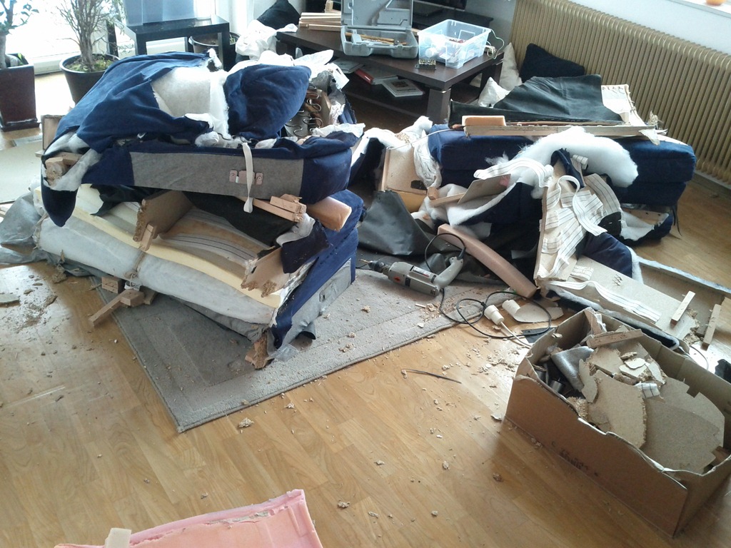 Ich habs geschafft! Ich habs geschafft!! Hehe hehe Harrr Harrr und Weibchen meinte ich solle nicht unausgeschlafen aufräumen! Und wie die sich gefreut hatt das ich das alles so schön Sofa zusammengeklappt hab das sie nur noch drunter Staubsaugen musste. Auseinanderzeihen das Sofa kann jetzt aber sie selber machen! Gutenr Mogen ich wünschen alles! Harr Harr Harr!