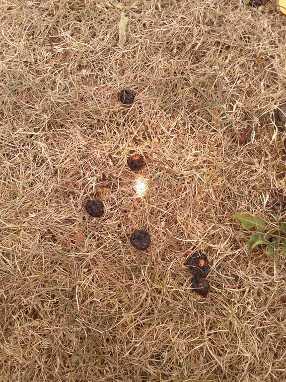 Die Kirschen vom Frühling – die die wir nicht geerntet hatten- vielen also vom Baum und blieben liegen. Dörrobst, das da seit Wochen rumliegt.