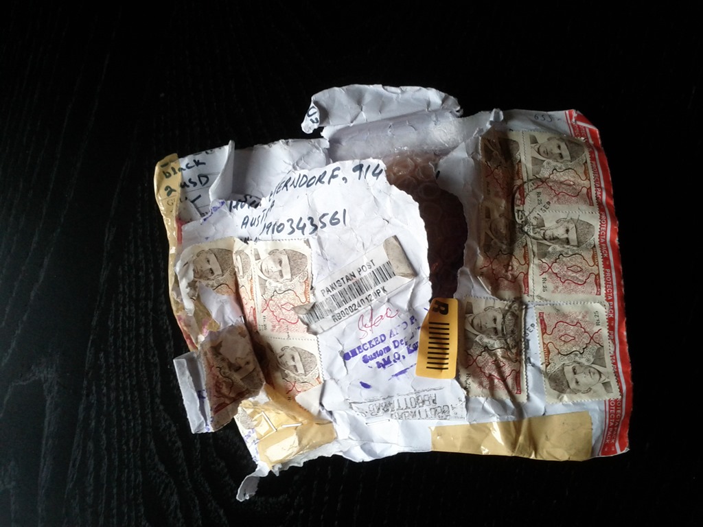 Ersteres ist der Werbeslogan der Post. Diese Briefsendung war etwas länger unterwegs. Genau gesagt vom 10. September bis zum 18. November. Über den Grund kann man durchaus spekulieren zumal der Brief in Pakistan seine Reise antrat. Der Inhalt eher weniger brisant ein ca 300 Gramm schwerer schwarzer Turmalin auch als Schörl bekannt. Ich fürchte das die Kombination aus Pakistan, das ja ein Nachbarland von Afghanistan ist, und die Reklamation des Inhaltes “ black” dafür Sorge trug das so mancher grundanständigen Beamten an seine Freizeit dachte . Klar ist das nur Spinnerei von mir aber ob da womöglich nicht doch wer an einen “ schwarzen Afghanen” dachte und gleich darauf an eine längere “Rauchpause”? Das Paket sah zumindest so aus als ob da mal einer vorsichtig rein schauen wollte. Dem Postboten war es etwas “Unangenehm” das “Päckchen” so zu bringen! Wurde mir auch genau so zum quittieren in die Hand gedrückt!