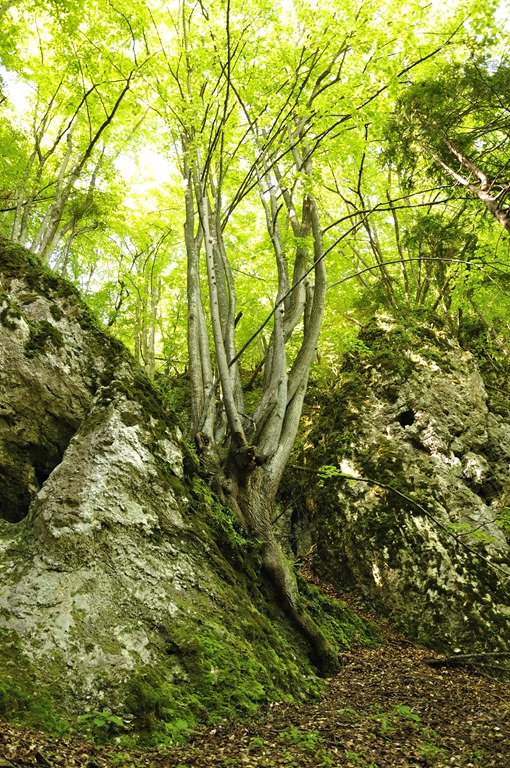 Der “hiesige” Teufelstein/Teufelsfels! Ein riesiger Baum oben auf und viel “kleine” drum herum. Klein waren sie mal, sind Typische Weiden ( Salix) die man dort klar erkennbar extra rundherum pflanzte und oben nen genagelten ähm Jesus druff ( zwischen den beiden Bäumen)